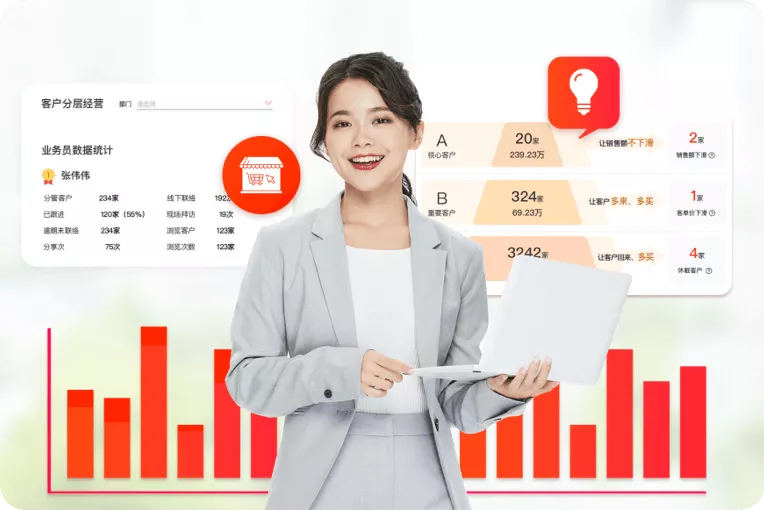 ● 智能客户分析,核心/重要/普通客户分层运营,提产出、防流失;